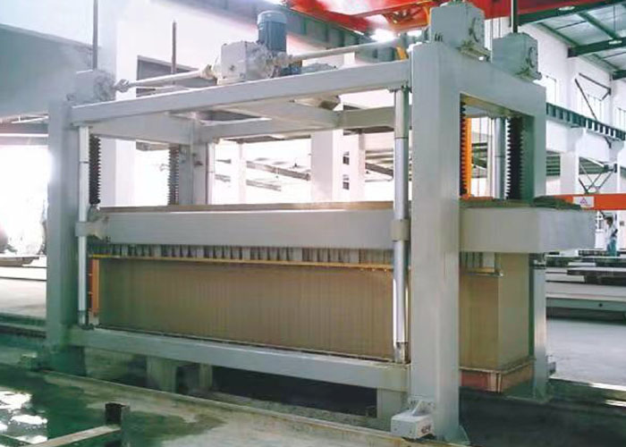 工作原理: 翻轉(zhuǎn)吊具把模具帶坯體一起空中翻轉(zhuǎn)90度置切割小車上,脫模把坯體連同側(cè)板留在切割小車上,切割小車由電機(jī)作動(dòng)力行走,通過縱切裝置完成縱向切割、銑槽、水平切割;切割小車?yán)^續(xù)行走至橫切裝置中央位置停止后,橫切裝置啟動(dòng),橫切架自上而下垂直下切完成橫向切割;切割小車再行走至編組吊具處由編組吊具將坯體(連側(cè)板)吊至蒸養(yǎng)小車上,切割小車返回原始位置進(jìn)行下一個(gè)切割循環(huán)。 主要特點(diǎn): ⑴、 機(jī)型結(jié)構(gòu)精簡(jiǎn)實(shí)用,便于安裝維修; ⑵、 坯體側(cè)立放置使坯體寬度為600mm,高度為1200mm,切割鋼絲短,不易拉斷,不易飄移,切割精度高; ⑶、 縱向切割裝置固定,切割小車行走完成縱向切割,切割時(shí)間短。橫切裝置采用鋼絲水平下切,縮短切割鋼絲長(zhǎng)度,保證切割精度; ⑷、 坯體側(cè)立后可縱向切割時(shí)完成銑槽,不需另配槽口加工設(shè)備; ⑸、 本機(jī)型對(duì)坯體作六面切割,制品質(zhì)量不受模油及模具變形影響; ⑹、 本機(jī)型除生產(chǎn)砌塊外還可生產(chǎn)板材; ⑺、 機(jī)型切割過程(翻轉(zhuǎn)、縱切、橫切)分不同工位完成,各工位工作簡(jiǎn)化,操作保養(yǎng)方便。